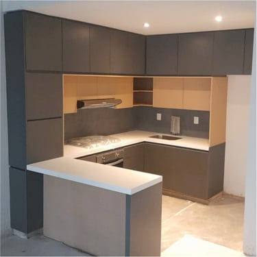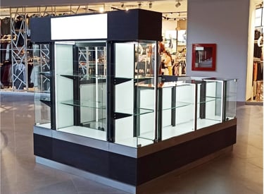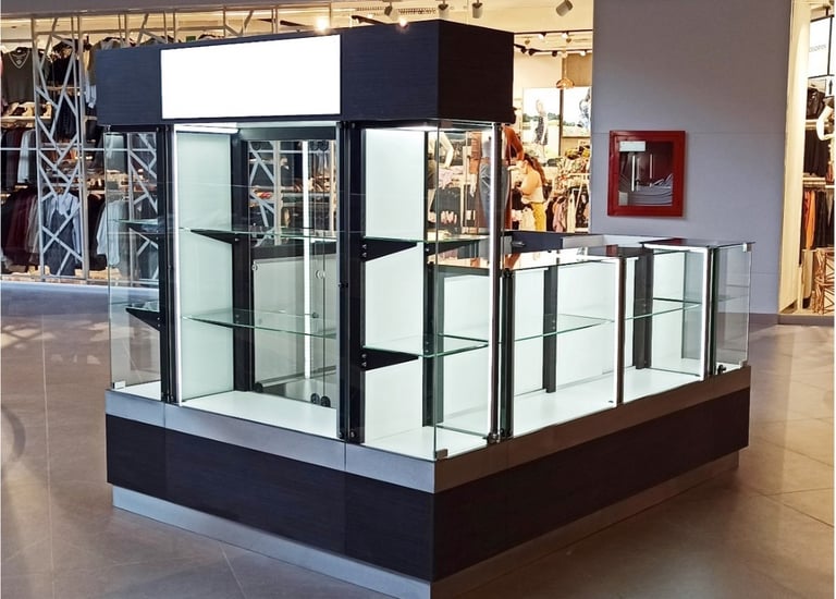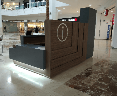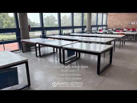 Mobiliario integrado por diferentes materiales (metal, madera, vidrio, plástico, superficie sólida y electrificación.